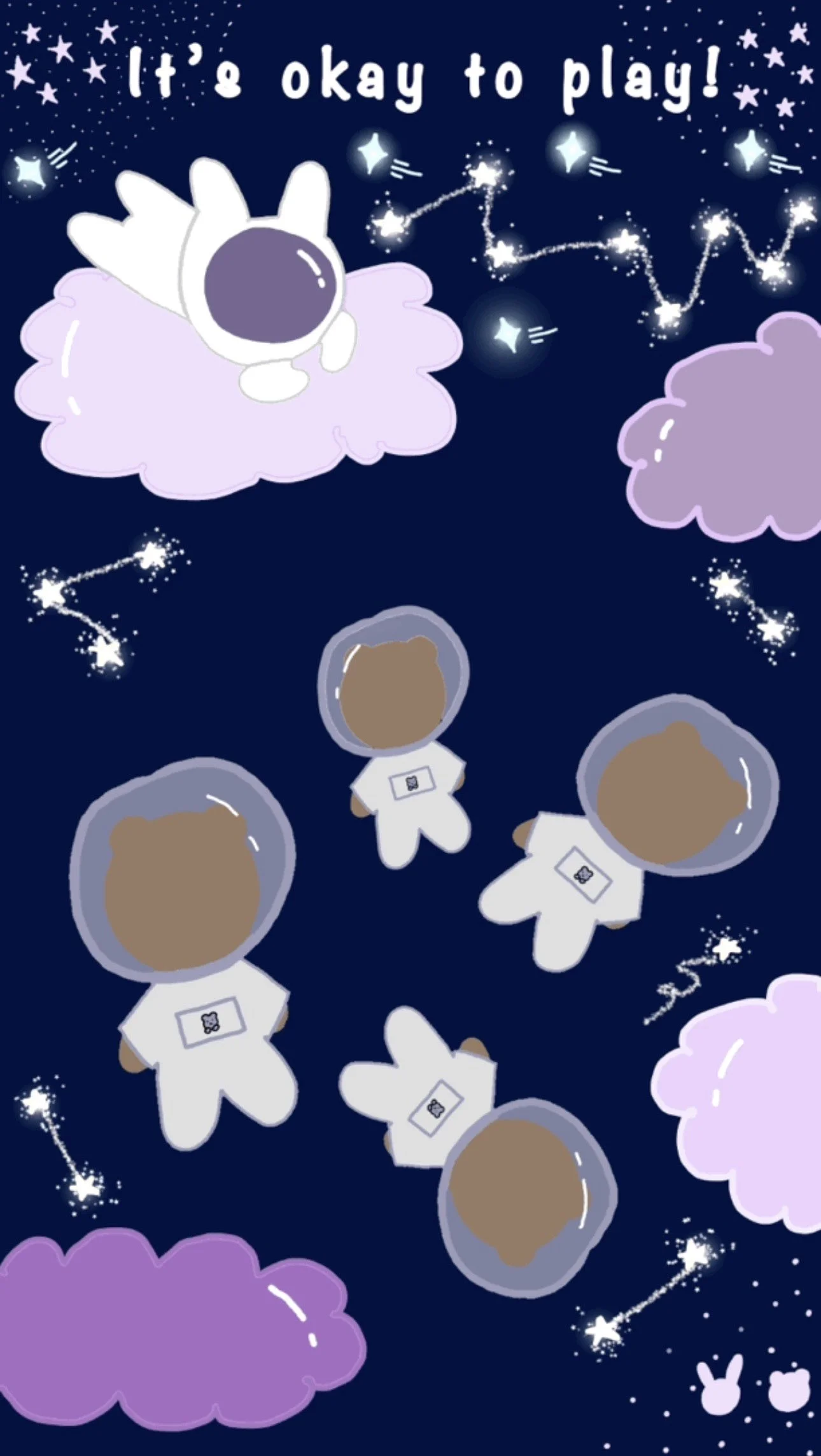 I created a GIF of teddy bears and a bunny wearing an astronaut suit floating in space. This is inspired by my previous work “OPERATION: Space Bunny”. I used two of the same drawings I created and each one has a key difference. The first one has no shimmer to the yellow stars while the second one has shimmer. This is an extension of “OPERATION: Space Bunny’s” overall message which is “it’s okay to play!” I figured since this is the busiest time for a student, this can be a cute reminder that it’s okay to still enjoy yourself despite being very busy.